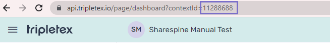 Du finner denne informasjonen i 'contextId' i Tripletex URL Vis skjermbilde ↗