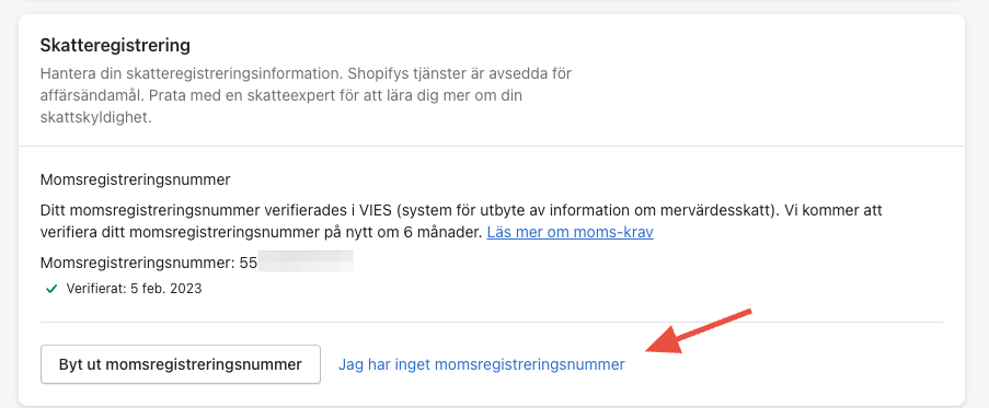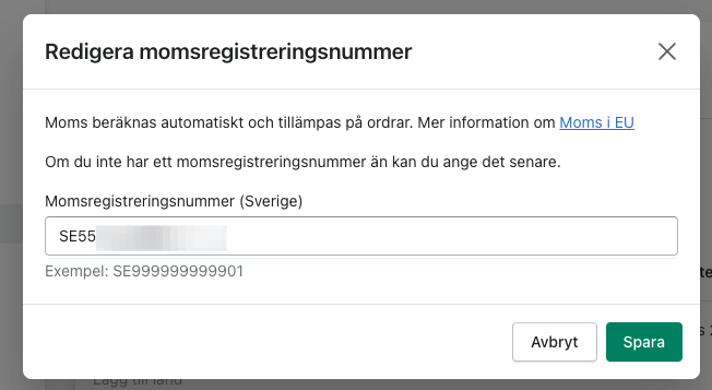 Ange ditt momsnummer i Shopify 2